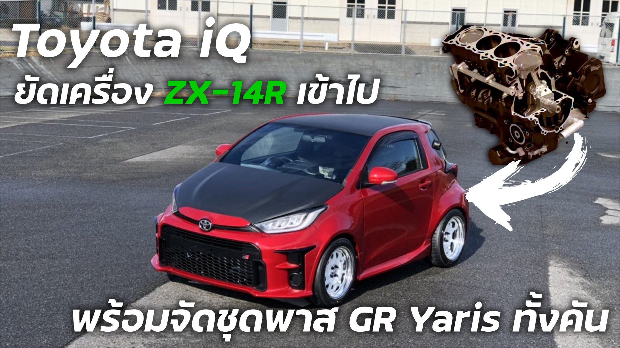 นักศึกษามหาลัยไซตามะ จับยัดเครื่อง ZX-14R ในเข้าไปใน Toyota iQ พร้อมชุดแต่ง GR Yaris ทั้งคัน | Kawasaki , ZX-14R , Toyota , GR Yaris , iQ